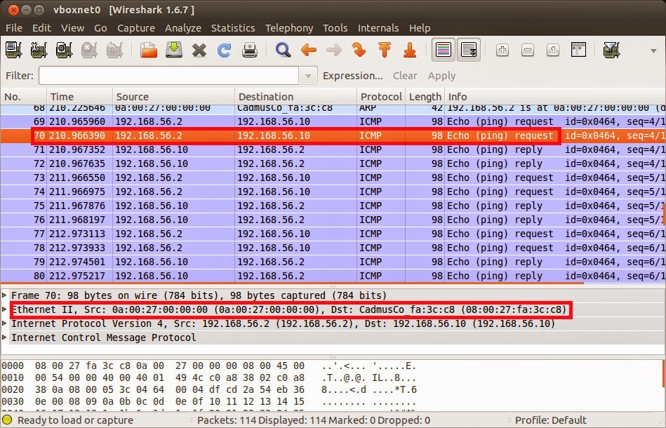 Ahora miraremos paquete a paquete, un ping lo forman dos paquetes, uno que envía una máquina a otra y el otro la contestación de la máquina 2 a la 1.